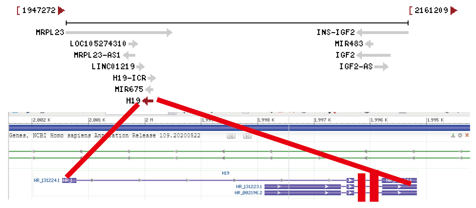 **基因具有3個轉(zhuǎn)錄本NR_002**.2 、NR_131**.1、NR_131**.1。需要在轉(zhuǎn)錄本的重疊位置設(shè)計靶點,進(jìn)行敲除,3轉(zhuǎn)錄本具有多個重復(fù)區(qū)域,可以設(shè)計出合適靶點。