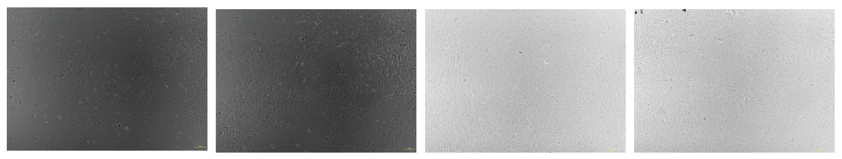 腦微血管內(nèi)皮細(xì)胞原代培養(yǎng)過程中,約24h即可貼壁生長,細(xì)胞呈長梭形生長緩慢。換液后細(xì)胞增殖明顯,出現(xiàn)以梭形為主的多種形態(tài),5- 7d 70%-80%可融合達(dá)到傳代標(biāo)準(zhǔn)。